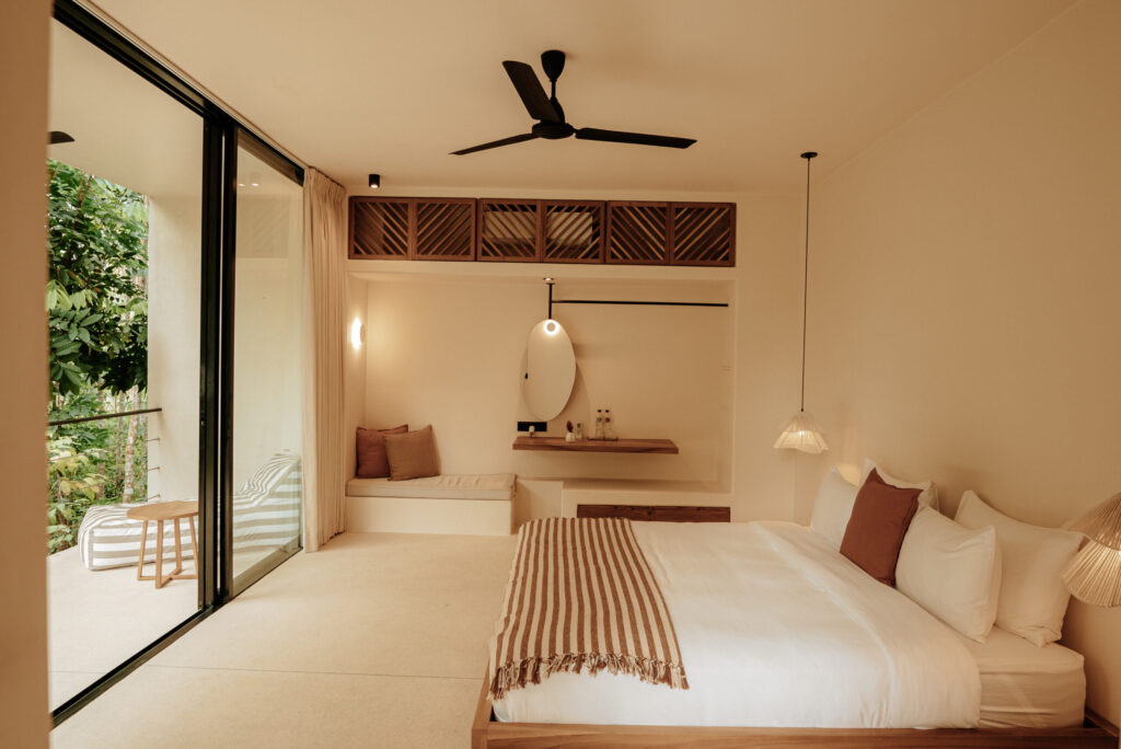 Hidden between palm trees, nestled in the jungle, our spacious suites offer the perfect balance of privacy, style, and comfort. Here, you can enjoy an intimate escape while still indulging in every modern amenity.